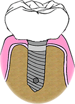 | A space is prepared in the bone. The implant is placed and covered with a temporary cap while it heals for 3-4 months. Sometimes bone grafts will also be necessary. |